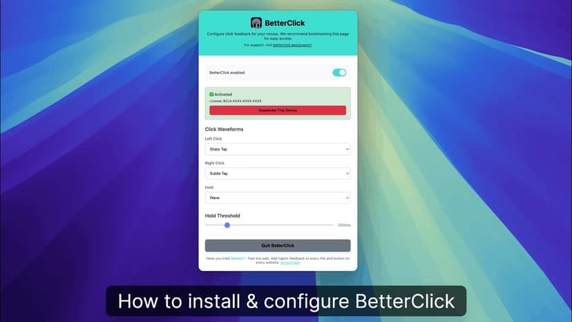 - Do I need to install the BetterClick app?Yes, the BetterClick app on the website is required to configure settings and trigger click haptics
